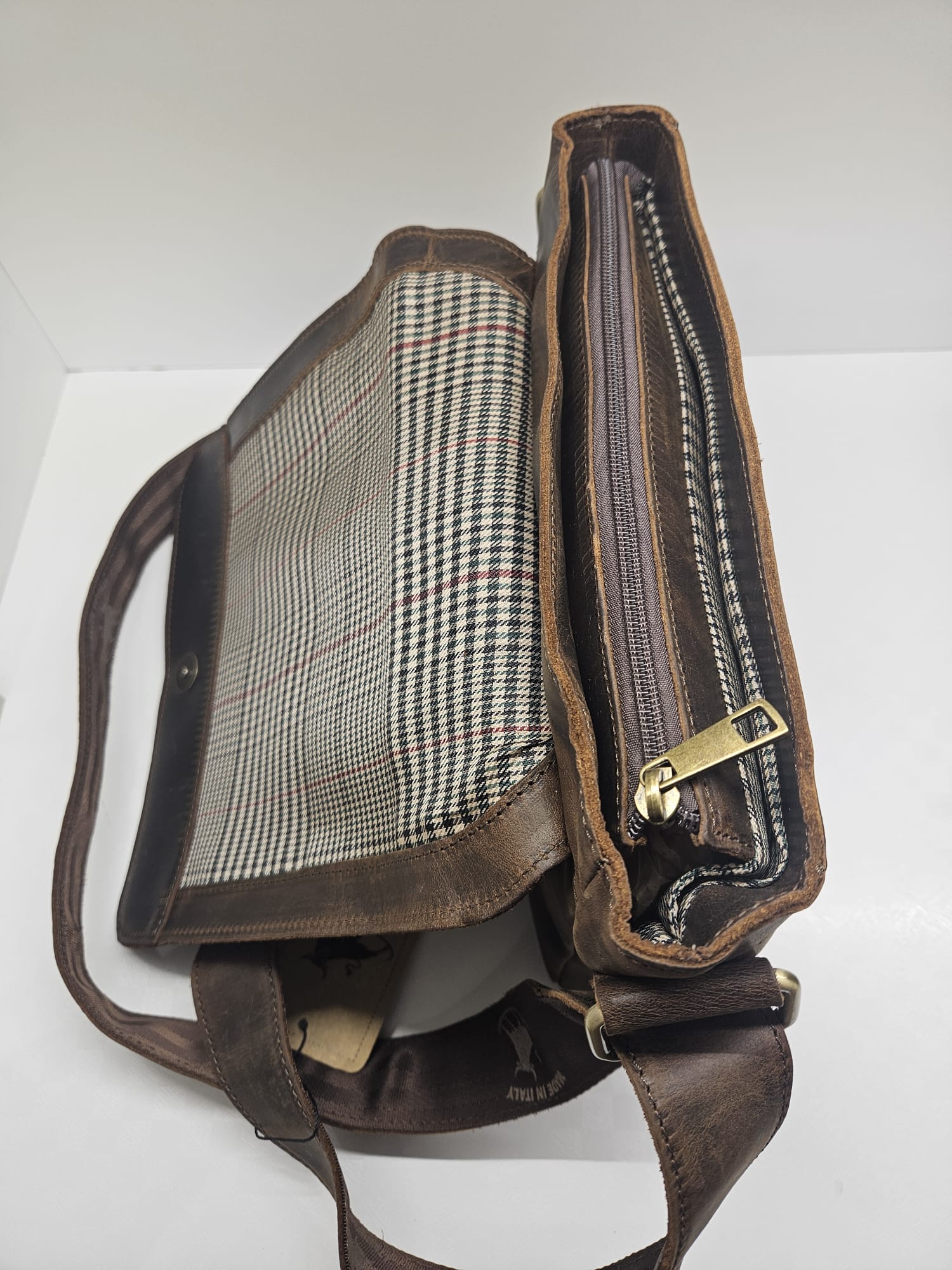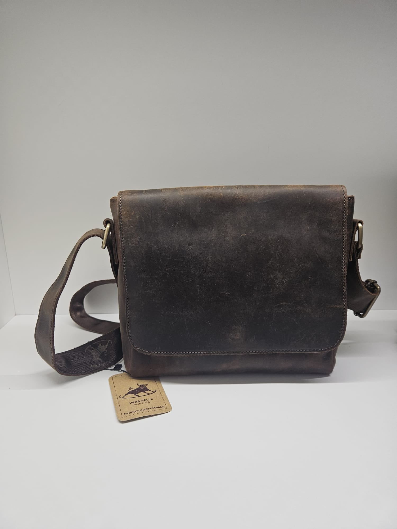 Borsello uomo in vera pelle ingrassata in toro, prodotto artigianale made in italy.