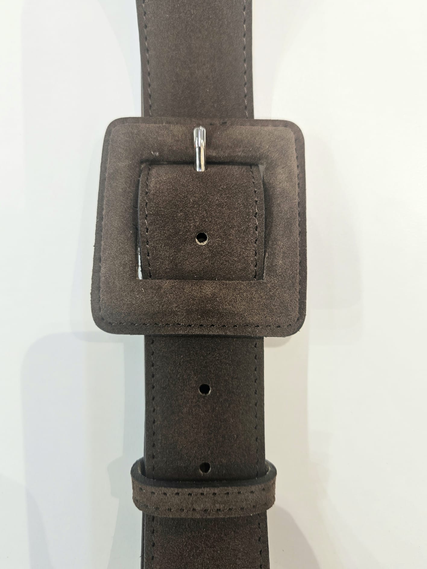 Cintura donna in pelle scamosciata con fibbia ricoperta in pelle scamosciata