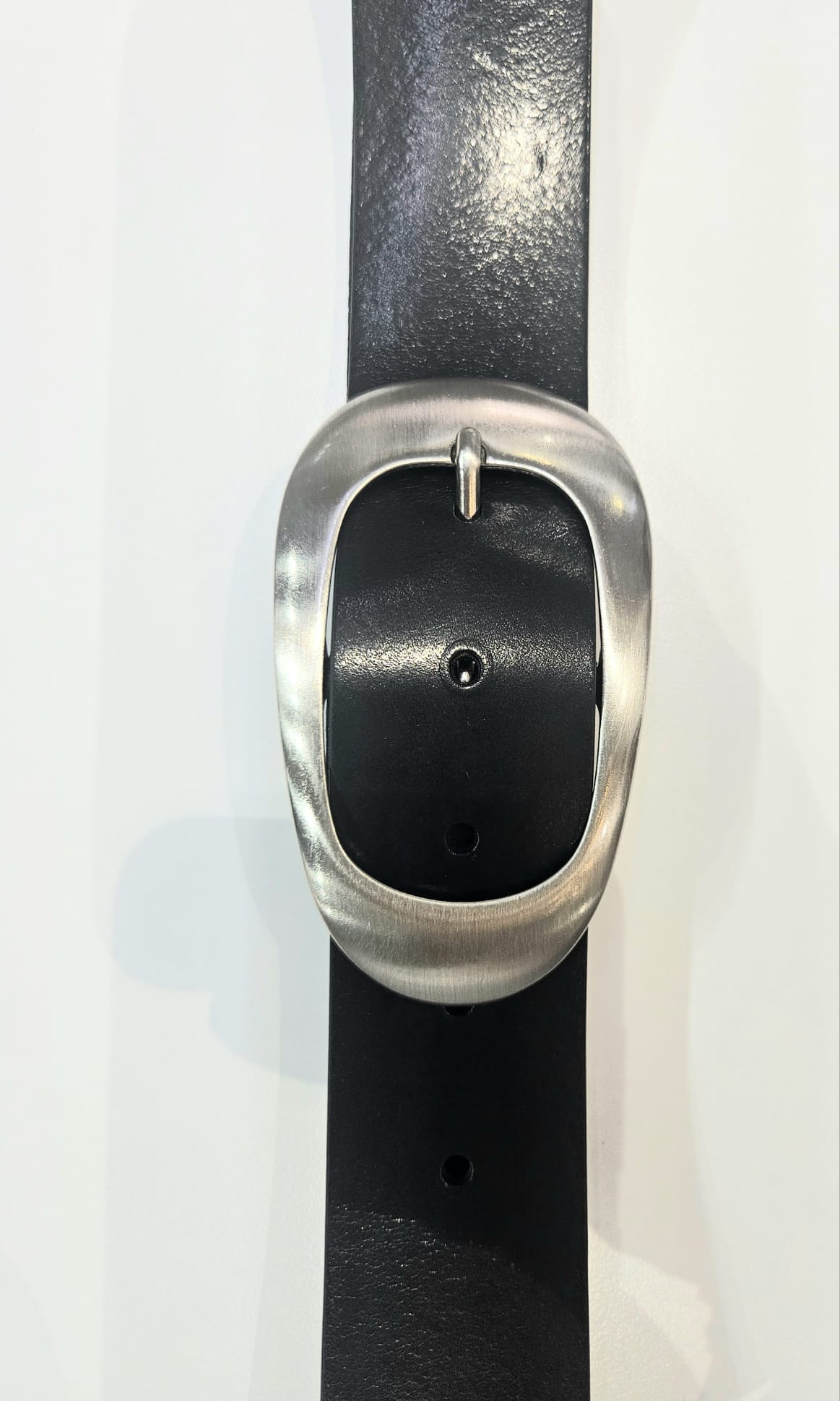 Cintura jeans donna in cuoio cm 4 con fibbia in metallo doppia.