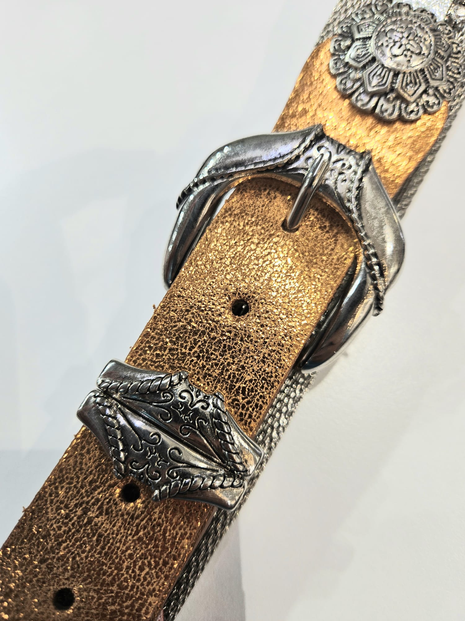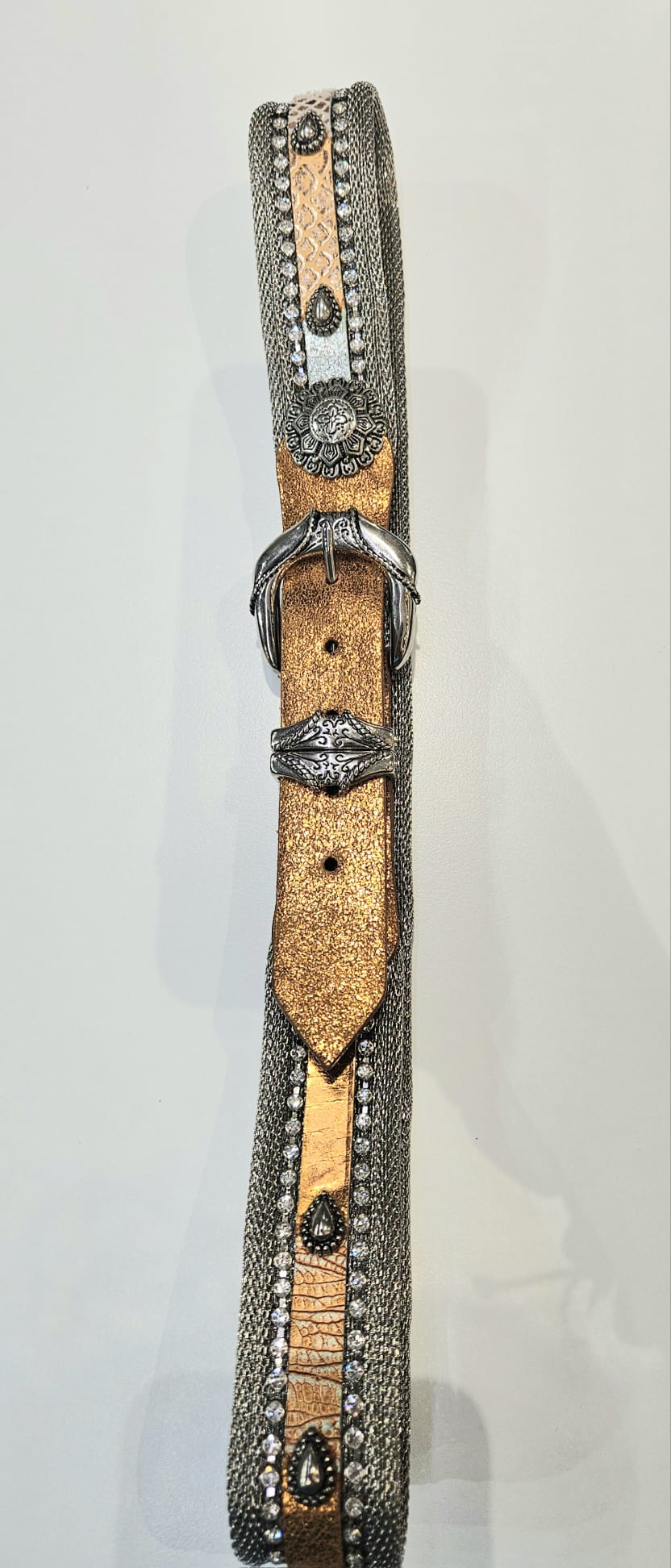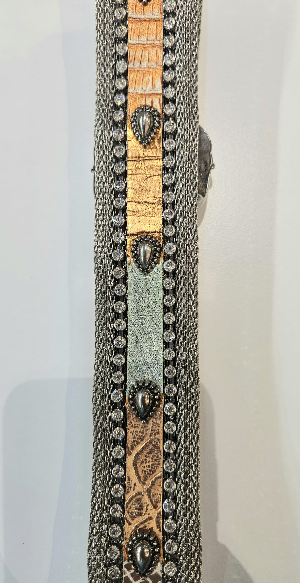 Cintura pachworch con strass e metallo